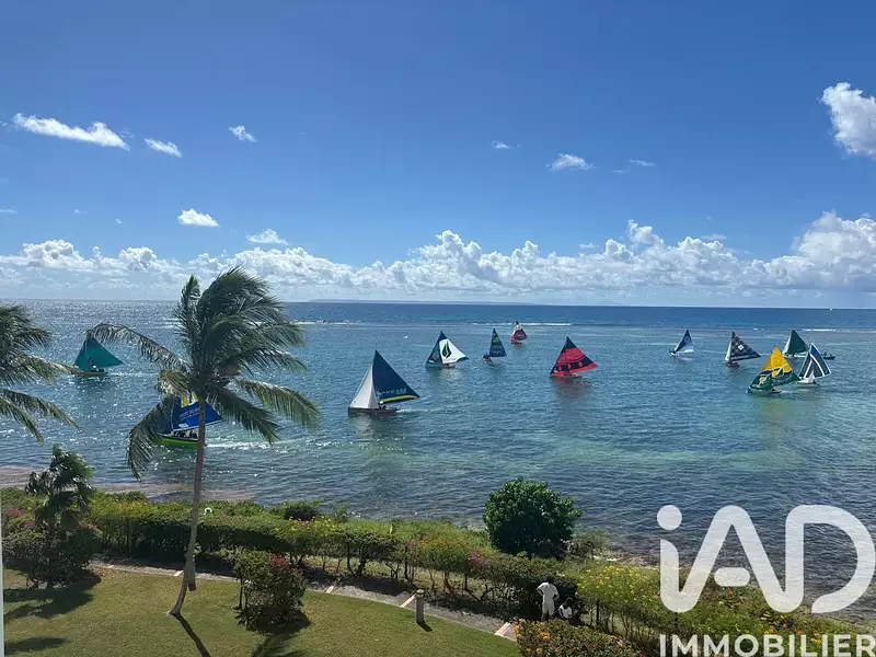 iad France - Yvonne Salerno vous propose: VUE MER IMPRENABLE ,vue lagon , Marie-galante et les Saintes. VENDU MEUBLÉ EQUIPÉ, magnifique appartement T4 triplex, lumineux et spacieux au COEur de Saint-François pour vous amoureux du beau.