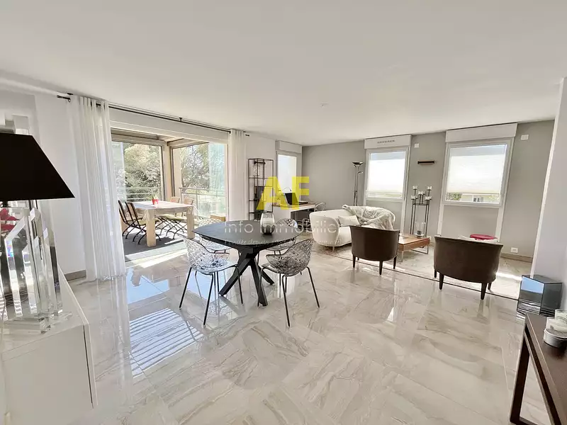 Description de l'appartement : En entrant, vous serez accueilli par un hall d'entrée, suivi de toilettes invités avec lave-mains. Le vaste séjour de 47 m2, agrémenté d'une cuisine semi-séparée entièrement aménagée et équipée, s'ouvre sur une loggia lumineuse avec murs de verre et pergola bio-climatique, offrant un cadre idéal pour vos moments de détente.