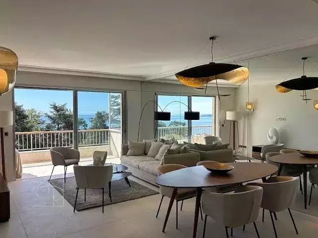 Dans le secteur ultra résidentiel de Cannes Californie avenue Roi Albert, dans une résidence sécurisée prestigieuse avec de nombreux service conciergerie 24-24h, piscine, practice de golf, parc, tennis, terrain de basket, parc pour enfants, salle de fitness et navette privée avec plusieurs rotation par jours dans le centre ville de Cannes, Superbe appartement traversant entièrement rénové de 4 pièces avec climatisation intégrée et domotique. Il se compose d'un hall d'entrée avec un beau séjour lumineux ouvert sur une terrasse vue mer panoramique et parc , une très belle cuisine neuve entièrement équipée, une grand chambre en suite orientée plein sud et ouverte également sur la terrasse vue mer avec son dressing entièrement aménagé, sa salle de douche, double vasque et son wc, un toilette indépendant, nombreux placards de rangement, deux autres chambres dont une très grande avec placard de rangement intégrée, salle de douche et wc.
