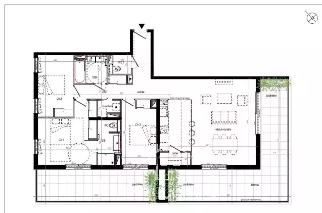 | 104 m² (carrez : 103,7) - 4 pièces - 3 chambres | Année de rénovation : 2024 |