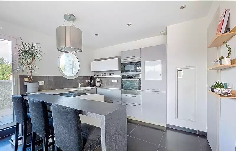 Ce bien rare offre un espace de vie lumineux, actuellement configuré en T4 avec cuisine séparée équipée (rénovée en 2021), mais pouvant être aisément transformé en T5 en intégrant la cuisine au séjour. L’appartement comprend 3 chambres spacieuses, une salle de bain, une salle d’eau, ainsi que deux WC. Les prestations sont de qualité : double vitrage PVC, volets roulants électriques, buanderie, cave, et une grande terrasse de 42 m² orientée Sud-Est/Nord, idéale pour profiter de l’extérieur.