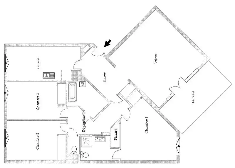 | Séjour de 25 m² | 1 salle d'eau - 1 salle de bain |