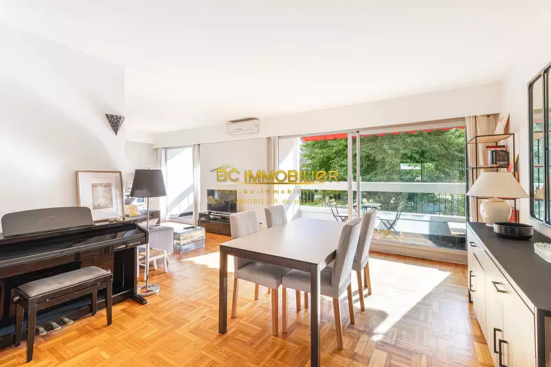 Il se compose d’une entrée avec rangement, d’un séjour et d’une salle à manger ouvrant sur un balcon donnant sur la verdure, au calme absolu et sans vis-à-vis. La cuisine semi-ouverte, aménagée et équipée, allie praticité et élégance.