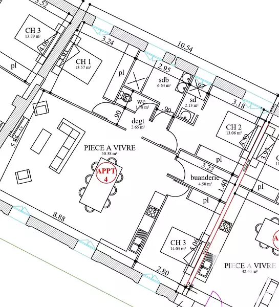 | 105 m² - 4 pièces | Dernier étage (1er) |