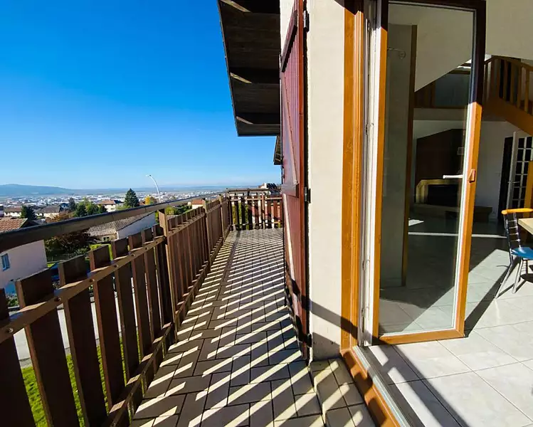 A découvrir, appartement en duplex dans une petite copropriété parfaitement entretenue des années 80, à l'orée de la forêt et avec une belle vue surplombant la ville.