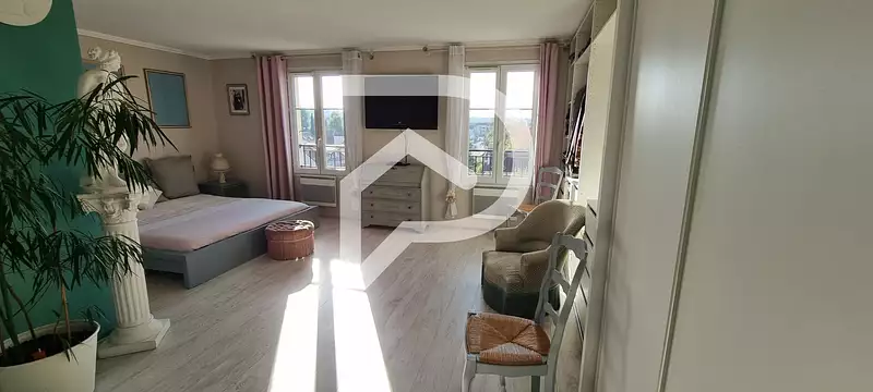 Grand duplex au 5ème et dernier étage avec ascenceur, terrasse de 31 m2 sans vis à vis ! Au dernier étage : Salon / SAM avec accès terrasse , WC, une chambre et une SDB. Au 4ème étage : grande chambre de 26m2 avec dressing (possiblement divisable), une SDB, une 3ème chambre ou bureau. Place de parking en sous-sol et possible seconde place box. Peu de charges, résidence proche des commodités avec le RER A à pied. Copropriété de 121 lots - dont 50 lots habitation. (Pas de procédure en cours). Charges annuelles : 2580 euros.