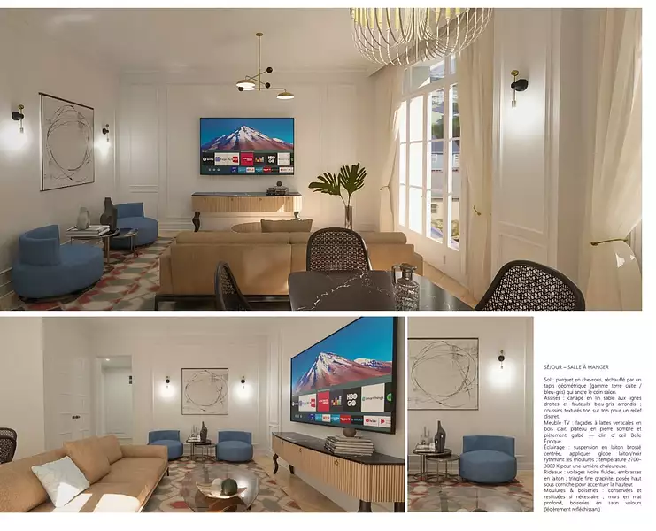 Nice - Carré d'Or - Maréchal Joffre Magnifique appartement 3/4 pièces - 108 m² - Vue dégagée - À rénover Dans un bel immeuble d'époque, découvrez cet appartement traversant, situé au 2?/3? étage avec ascenseur, offrant une vue dégagée, sans vis-à-vis, avec une très belle luminosité - exposition Sud/Nord. il se compose actuellement d'un double séjour de plus de 30 m² (salon : 13,63 m² - salle à manger : 16,82 m²), de deux grandes chambres (16,53 m² et 14,57 m²), (avec une salle de bain- toilette une salle d'eau- toilette) un toilette séparé. Une cuisine indépendante. De nombreux rangements et une cave complètent l'ensemble. Beau potentiel de redistribution: possibilité de créer une troisième chambre à la place du salon, tout en conservant un espace de vie spacieux et lumineux. Un projet de rénovation peut être mené par une entreprise spécialisée, selon vos envies, pour un budget estimé à environ 100 000 €. Une opportunité rare au cœur du Carré d'Or, à proximité immédiate des commerces, du tramway et de la Promenade des Anglais. Ecoles. Surface CARREZ : 106.67 m² Prix de vente 840 000 € Prix TTC et Honoraires à charge vendeur TTC Montant estimé des dépenses annuelles d'énergie pour un usage standard : entre 1 870 € et 2 570 € par an. Prix moyens des énergies indexés sur les années 2021 2022 2023 (abonnement compris). DPE : D GES : D Pour visiter et vous accompagner dans votre projet, contactez Elodie PICON-BRUN 06 67 44 38 75 Prix TTC et Honoraires à charge vendeur TTC Prix de vente 840 000 € Selon l'article L.561.5 du Code Monétaire et Financier, pour l'organisation de la visite, la présentation d'une pièce d'identité vous sera demandée. Les informations sur les risques auxquels ce bien est exposé sont disponibles sur le site Géorisques : www.georisques.gouv.fr Cette présente annonce a été rédigée sous la responsabilité éditoriale de Elodie PICON-BRUN agissant sous le statut d'agent commercial immatriculé au Ville du greffe : NICE sous le numéro RSAC N° 823 722 293 auprès de la SAS IMMO RESEAU au capital de 10 000€ - Réseau national immobilier sur internet, 44 Allée des Cinq Continents - 44120 VERTOU - RNE NANTES 519 718 886. Carte professionnelle T et G n° CPI 3002 2018 000 024 971 CCI de Nantes-Saint-Nazaire (44) Garantie par GALIAN - 89 rue de la Boétie - 75008 Paris N°171379G pour 120 000€ pour T. Assurance responsabilité civile professionnelle par GALIAN n° de police 120 137 405 (réf. 36605) - Le professionnel garantit et sécurise votre projet immobilier Prix de vente 840 000 € Prix TTC et Honoraires à charge vendeur TTC Montant estimé des dépenses annuelles d'énergie pour un usage standard : entre 1 870 € et 2 570 € par an. Prix moyens des énergies indexés sur les années 2021 2022 2023 (abonnement compris). DPE : D GES : D