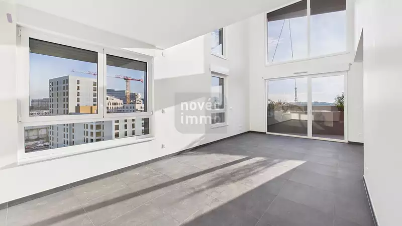 Découvrez ce très bel appartement exclusif en 5Pièces et de 106,10m2 (carrez- superficie déclarée) en duplex, situé au dernier étage. Il est composé d'une pièce de vie spacieuse et très lumineuse de 33,86m2, d'une salle d'eau entièrement équipée (meuble vasque, douche, miroir lumineux, sèche-serviette, WC intégré), de quatre chambres à coucher, d'une salle de bain équipée (baignoire, meuble double-vasque, miroir) ainsi qu'un WC intégré.