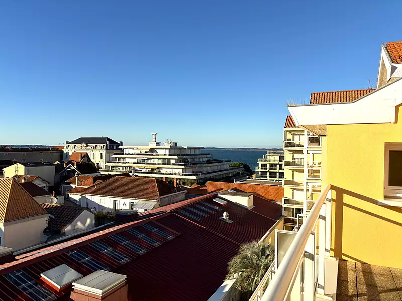 ABSOLUTE Habitat vous invite à venir découvrir en centre-ville ce très bel appartement 4 pièces 3 chambres de 107 m² avec triple exposition situé dans une ruelle d'Arcachon à 2 pas de l'avenue Gambetta avec ses commerces et de la jetée Thiers. Appartement ayant un magnifique plafond cathédrale du fait de son dernier étage offrant de très beaux volumes avec un salon/séjour de plus de 40 m² ayant 2 extérieurs. Un balcon côté Est et une terrasse intimiste côté Ouest de 16 m² avec jolie vue bassin ! Appartement sans aucun vis à vis et au calme surplombant tout ce qu'il y a autour. Côté nuit, 3 chambres dont 1 suite parentale avec sa jolie salle de bain offrant de belles prestations ainsi qu'une salle d'eau en supplément et wc indépendant. Enfin, un cellier privée et un double parking boxable de 25 m² viennent compléter ce bien si rare comme on en a peu ! A visiter très rapidement ! Mandat N°2523 (3.60 % honoraires TTC à la charge de l'acquéreur.) Copropriété de 45 lots - dont 45 lots habitation. (Pas de procédure en cours). Charges annuelles : 3774 euros. Clément RABIER (EI) Agent Commercial - Numéro RSAC : 878179241 - Bordeaux.