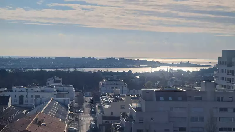 La Rochelle - La Genette Idéalement situé au 10ème étage, à proximité immédiate du centre ville et de la mer, très bel appartement de 107 m2 avec terrasses et garage. Il se compose d'une entrée, cuisine aménagée, cellier, vaste séjour ouvrant sur une terrasse avec vue dégagée sur la mer et le centre ville, dégagement, WC/buanderie, salle d'eau et salle de bains, placards, deux chambres dont une bénéficiant d'une terrasse. Classe énergie D.