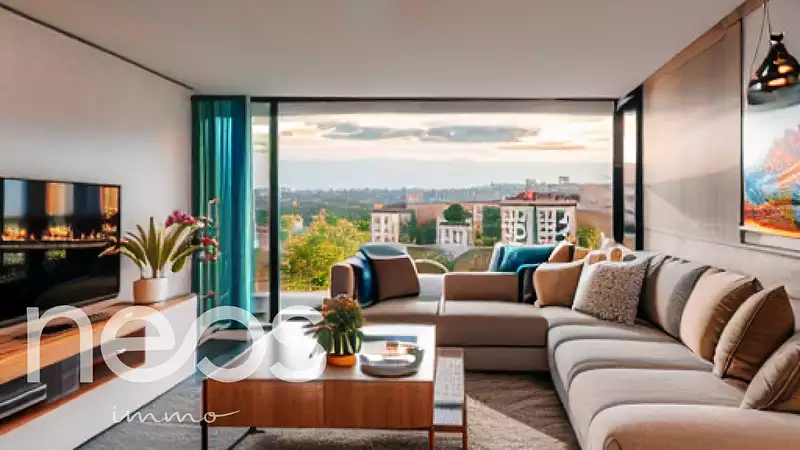 - d'une grande pièce de vie de 37 m² avec cuisine ouverte et donnant Nord sur le grand balcon de 15 m²