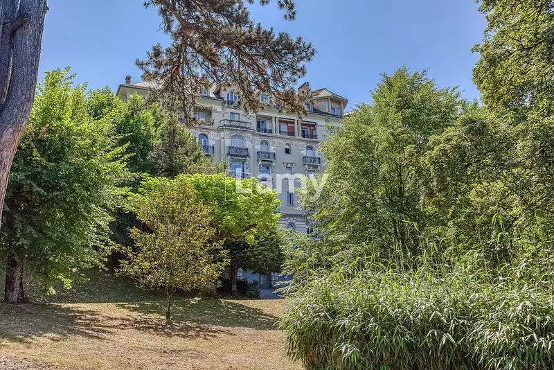 AIX-LES-BAINS (73100) – T3 de standing de 108m² avec vue dégagée.Situé sur les premières hauteurs d’Aix-Les-Bains, au sein d’un parc arboré et sécurisé, cet appartement de type 3 offre un cadre de vie calme et reposant, tout en restant proche des commodités. Niché au deuxième étage d’une copropriété de très bon standing avec ascenseur, il est accessible aux personnes à mobilité réduite.En parfait état, il dispose d’un vaste séjour lumineux, de chambres spacieuses, d’une cuisine fonctionnelle et d’une salle d’eau soignée. Son orientation Ouest permet de profiter d’une belle luminosité et d’une vue dégagée sur les environs.Le chauffage est assuré par un système collectif au gaz, garantissant confort et praticité. Une cave et un parking collectif complètent ce bien, avec la possibilité d’acquérir un garage en supplément.Un appartement d’exception, alliant confort, espace et tranquillité, idéal pour profiter pleinement de la douceur de vivre aixoise.Biens soumis au statut de la copropriété comprenant 90 lots principaux.Montant moyen annuel de la quote-part du budget prévisionnel à la charge du vendeur pour les dépenses courantes : 3960 €.