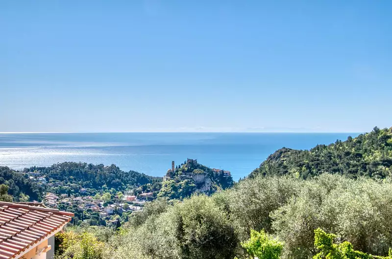 Eze, À quelques minutes de Monaco, en position dominante, cette villa sur toit dernier étage, unique offre une vue spectaculaire à 180° sur la mer Méditerranée et le château médiéval d’Eze. Situé dans une résidence sécurisée, au calme, ce duplex rare combine de grands espaces extérieurs à chaque niveau et une configuration actuelle en 3 pièces, qui met en valeur ses beaux volumes.