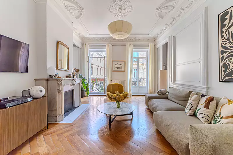 Appartement de charme au coeur du centre historique de Montpellier Idéalement situé dans l'une des rues les plus prisées du centre-ville, au sein d'un bel immeuble du XIXe siècle, cet appartement de 108 m² en étage séduit par ses volumes généreux et le cachet de l'ancien. Il offre un double séjour lumineux et au calme, sublimé par un parquet en point de Hongrie et des moulures d'époque, une salle à manger élégante, deux chambres ainsi qu'une pièce polyvalente pouvant faire office de bureau, dressing ou chambre d'enfant. La climatisation assure un confort optimal tout au long de l'année, et une petite terrasse attenante à la cuisine vient compléter ce bien et une cave. Un bien rare, dans un emplacement d'exception, alliant authenticité, élégance et qualité de vie. A découvrir sans attendre. Votre Agent Gwenael MATHIEU : 07.60.31.08.08 Copropriété de 20 lots - dont 20 lots habitation. (Pas de procédure en cours). Charges annuelles : 1517 euros.