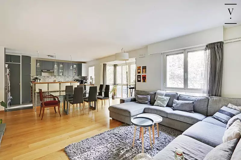 Voltaire/Charonne. Villaret Immobilier vous propose, dans un quartier agréable et commerçant au sein d'un immeuble récent, ce bel appartement familial de 107m2 Loi Carrez bénéficiant d'un espace extérieur de 7 m2 sur une cour calme et arborée, exposé plein Sud.