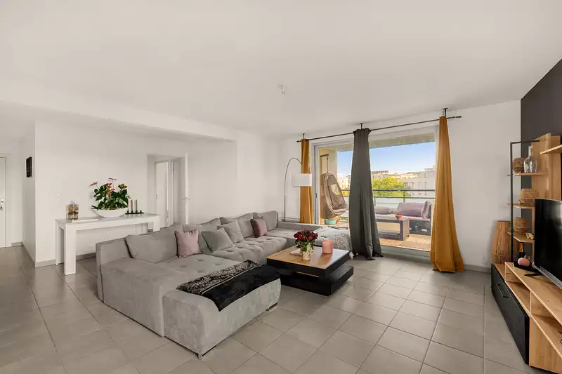 Dès l'entrée, vous serez accueilli par un grand séjour de 30 m2, lumineux grâce à sa triple exposition et sans vis-à-vis direct. Une première terrasse de 10 m2 prolonge cet espace parfait pour vos moments de détente. Cette grande pièce de vie s'ouvre sur une cuisine d'angle ouverte créant ainsi un espace de vie convivial. Pour parfaire l’aménagement, une seconde terrasse de 12 m2 s’ajoute à l’ensemble.