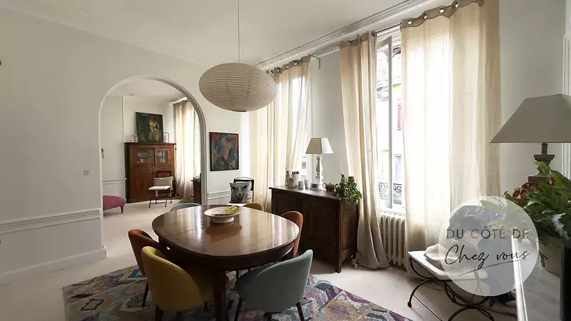 Dès la belle entrée, le charme opère : Un vaste séjour lumineux de 37,60 m2 où l’on imagine aisément de beaux moments de convivialité.