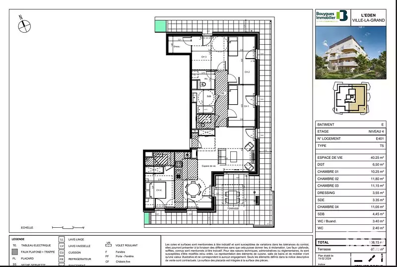 | 108 m² - 5 pièces - 4 chambres | Dernier étage (4ème) avec ascenseur |