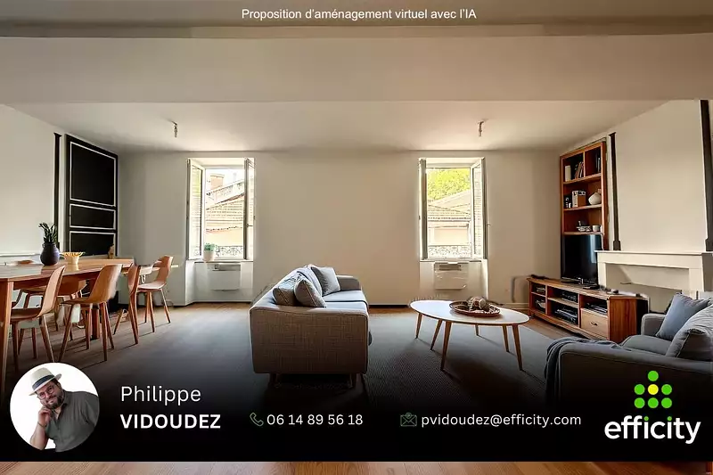 effiCity vous propose, en exclusivité, cet appartement T3 de 108 m² situé au cœur de Vinay, au deuxième étage (sur trois) d'un immeuble ancien sans ascenseur.