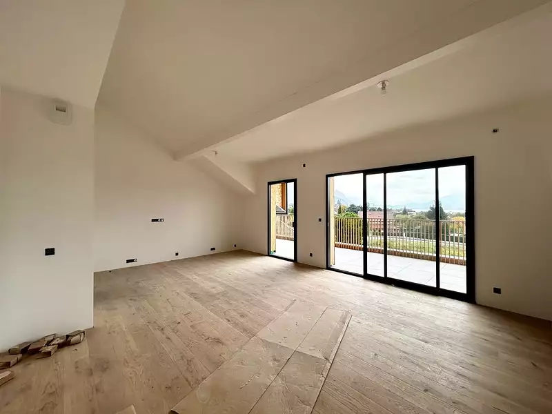 Annecy-le-Vieux – Attique T4 traversant de 109 m² avec terrasse panoramique de 84 m², vue lac et les massifs environnants.