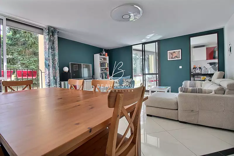 Dans une résidence recherchée (Domaine de la Rivière) et dont vous pourrez profitez prochainement sans frais d'une isolation par l'extérieur, d'un ravalement, de nouveaux vitrages etc.. Ce bel appartement traversant de quasiment 110m² offre une belle pièce de vie mitoyenne à la cuisine et un accès sur l'extérieur. Vous trouverez 2 espaces nuit séparés ainsi que des rangements. D'un côté 2 chambres , une salle d'eau et un WC séparé et de l'autre 2 chambres , une salle de bains avec WC. Ces espaces sont séparés par une entrée. L'offre comprend 2 stationnements, à savoir un box et une place sécurisée en extérieur. Copropriété de 304 lots - dont 99 lots habitation. (Pas de procédure en cours). Charges annuelles : 4140 euros.