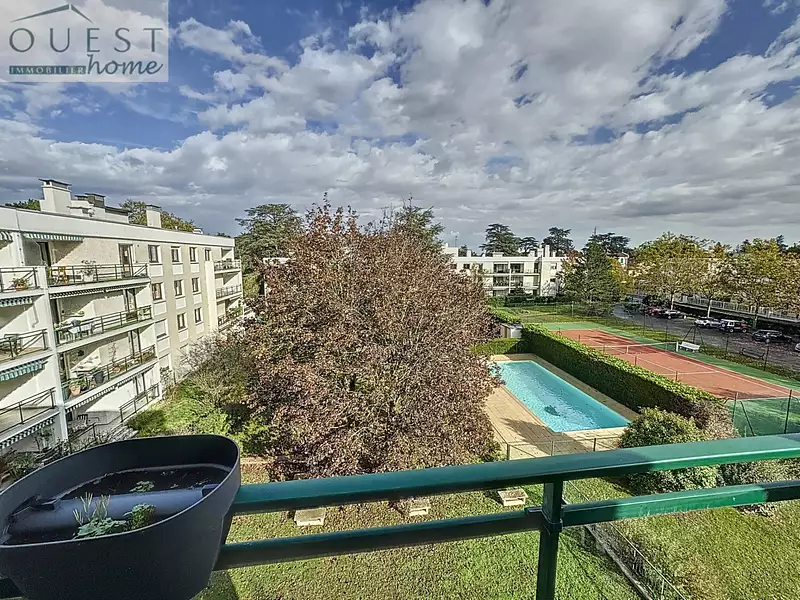 Dans copropriété de standing, proximité bus et Halles de l'Ouest, dans parc avec piscine et tennis, bel appartement de 110m2 en dernier étage entièrement rénové à vendre. Il se compose d'un hall d'entrée qui dessert un séjour lumineux en angle donnant sur une terrasse, une cuisine équipée 'esprit loft' et WC. Pour la partie nuit, deux espaces distincts, l'un avec deux chambres et salle de bain, l'autre avec deux chambres également et salle d'eau. Complète ce bien une grande cave.