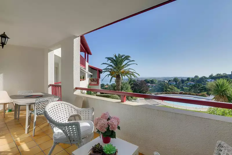 Dans une résidence de standing avec piscine et gardien; magnifique appartement traversant de type T4 avec vue mer disposant d'une terrasse et aperçu sur la baie de Saint jean de Luz.