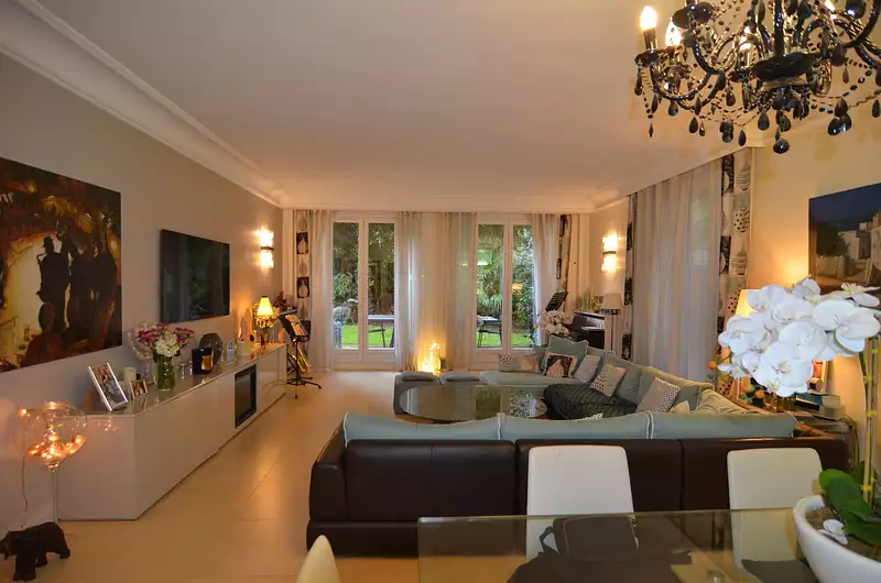 Neuilly sur Seine (92200) Saint-James, 3 pieces de 110 m2 en rez-de-jardin, comprenant une entree, salon salle a manger, 2 chambres et une salle de bains. Jardin arbore d'environ 200 m2. Au sous-sol un parking. Occupe par un homme de 86 ans. DPE F en cours d'actualisation. Comptant 1 320 000 et euro, sans rente (honoraires inclus 70 000 et euro, tc a la charge de l'acquereur soit 4,39% de la valeur libre). Valeur libre 1 661 800 et euro,.