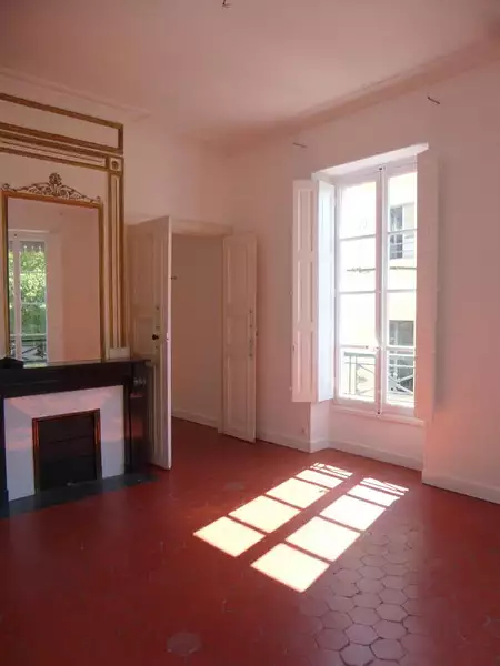 Très bel appartement ancien en bordure de l'Ecusson à deux pas des Arènes à Nîmes. Situe à l'angle de deux rues, exposé ouest et sud, cet appartement est lumineux et sa vue dégagée. Il comprend une grande entrée, un salon, une salle à manger, deux chambres, un dégagement avec placards, une salle de bains avec de grands placards, des toilettes séparées et une cuisine équipée (plaque de cuisson au gaz, four électrique et hotte aspirante). Les éléments anciens apportent charme et cachet : quatre cheminées, tomettes, bars, moulures, volets intérieurs et belle hauteur sous plafond. Chauffage central individuel au gaz. Classe C.