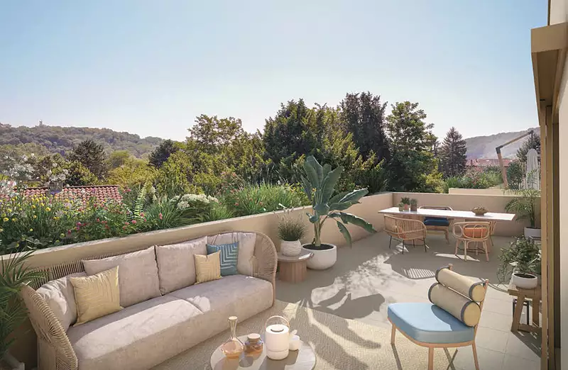La magnifique résidence se compose de 4 petits bâtiments d'un étage surmontés d'un attique, offre une atmosphère conviviale et intimiste. Jardinières plantées de fleurs locales, haies ombragées et toits végétaux offrent à votre vue un spectacle aussi vrai que nature, et ce depuis tous les appartements qui composent la résidence. Ses 32 appartements bénéficient d’une double, voire d’une triple exposition, garante d’une exceptionnelle luminosité. Cet ensoleillement unique est propice à l’apaisement comme à l’inspiration.