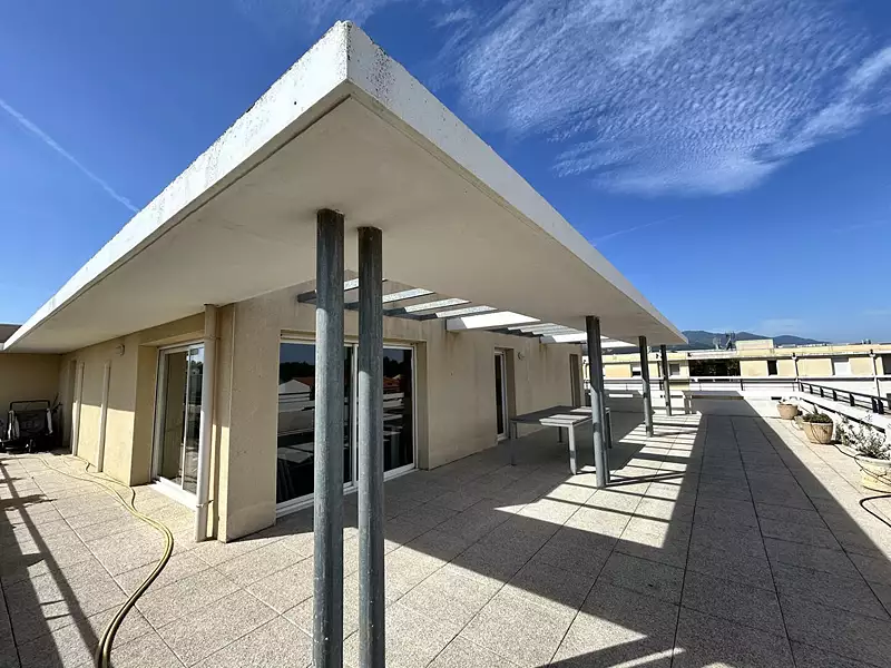 Bien unique et rare ! ARGELES-SUR-MER, dans résidence récente avec Piscine, Au 3ème et dernier étage avec ascenseur, T5 de 111.10 m² en triple exposition composé : Entrée avec placard - Séjour/Salle à manger - Cuisine équipée - Suite parentale avec placard - 1 coin nuit séparé avec 3 Chambres + placards et Salle de bains / WC - Cellier - WC séparés + coin Buanderie. Terrasse exceptionnelle 3 faces de 106.10 m². 2 Parkings privatifs côte à côte avec pergola dans la résidence. AGENCE PEYROT CANET : 07.72.39.18.34 Copropriété de 270 lots - dont 50 lots habitation. (Pas de procédure en cours). Charges annuelles : 2461 euros.