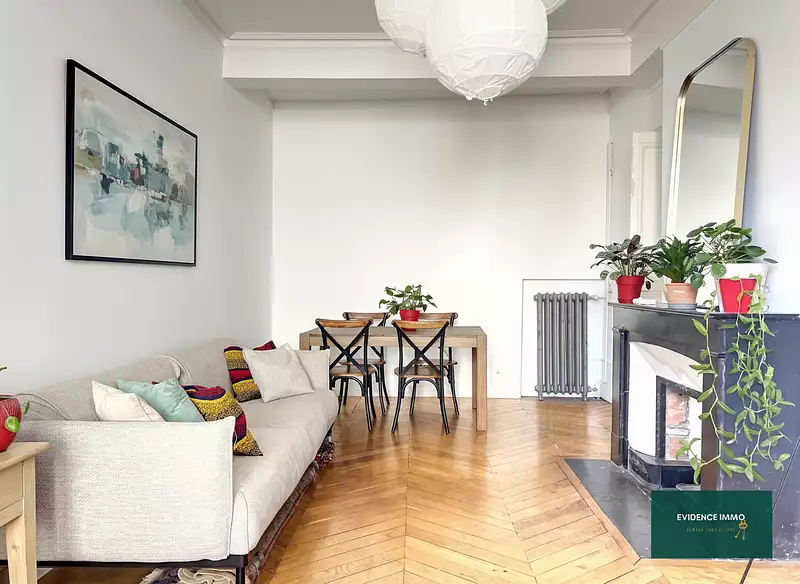 Il se compose d'une cuisine entièrement équipée, d'un séjour / salle à manger avec un beau parquet point de hongrie, une salle d'eau entièrement rénovée avec WC, une belle chambre parentale de plus de 20 M2.