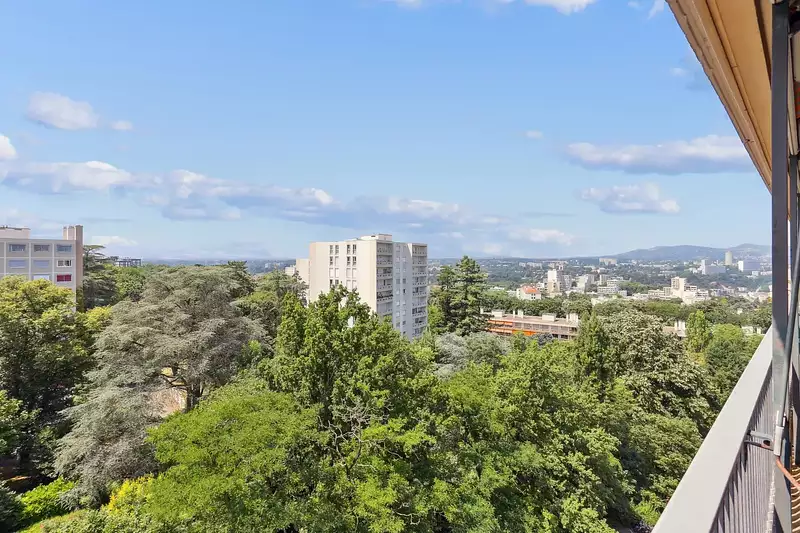 POINT DU JOUR/MINIMES APPARTEMENT Grand T4 de 112,58 m² + grand balcon de 14,42 m2 dans résidence verdoyante, calme et résidentielle, situé en 7e et dernier étage, exposition Sud/ouest avec vue panoramique, à proximité toutes commodités, commerces, transports, ets scolaires. Annexes : Grande Cave de 10 m² et possibilité Garage box fermé + parking numéroté en sus. Local vélos. Vue Mont d'or et Mont du Lyonnais.