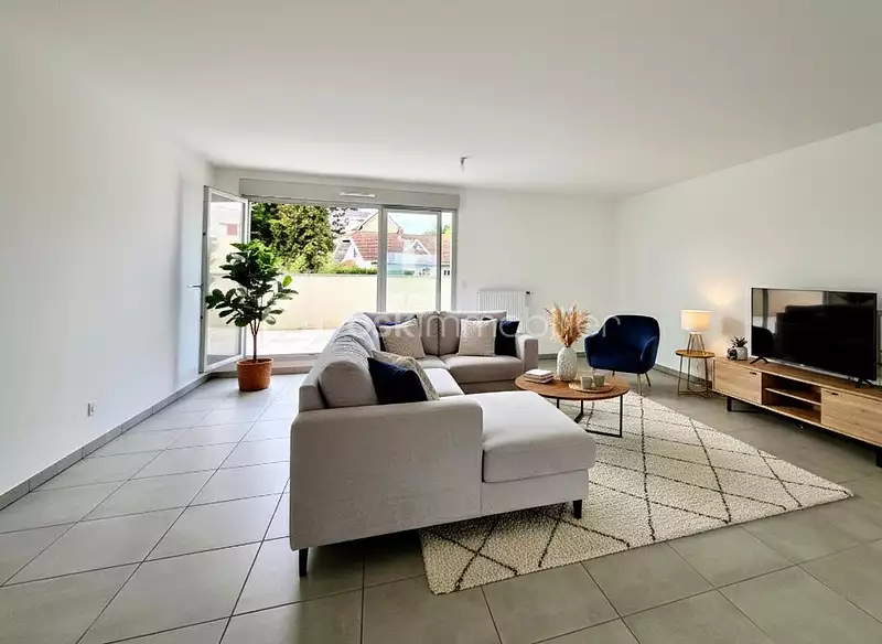 Au cœur du Vieux Crépieux, niché dans la verdure, AU DERNIER ÉTAGE d'une résidence toute récente, la luminosité de la pièce de vie est exceptionnelle, grâce à une double ouverture sur les DEUX TERRASSES.
