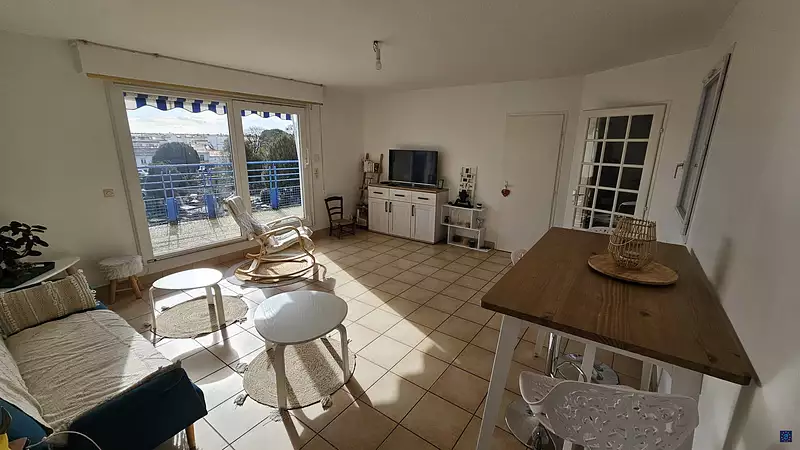 Superbe appartement situé au 4 ème et dernier étage avec ascenseur comprenant une entrée, une cuisine, un séjour, 3 chambres dont une avec cabinet de toilettes, un wc, une salle de bains, un cellier, placards, véranda , Grande terrasse de 49 m², 200 m du marché et 350 m plages.
