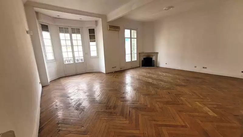 Au sein du quartier très prisé de la Libération sur Joseph Garnier, spacieux 4 pièces en étage élevé composé d'une entrée, un grand living avec parquet, 3 belles chambres à coucher avec placards, une salle de bains, une grande cuisine, un wc indépendant avec coin douche, une immense cave en sous sol.