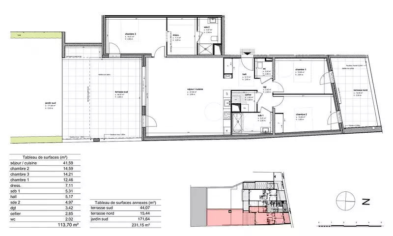 Cet appartement neuf de type 4, d’une surface de 113 m², saura vous séduire par ses prestations de qualité. Profitez d’un jardin privé de 171 m², parfait pour vos moments de détente en plein air, ainsi que d’un garage privatif pour un stationnement pratique et sécurisé.