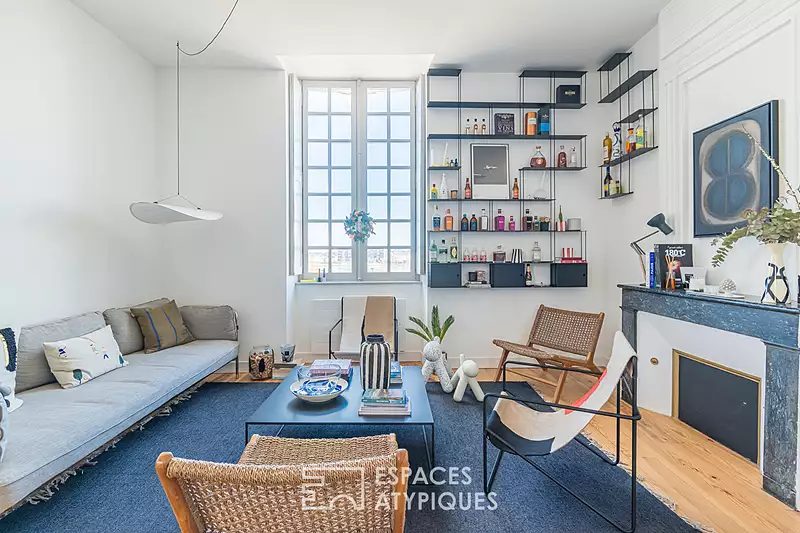 Sur les quais, à 100 m de la Basilique Saint-Michel, dans un immeuble en pierre bien entretenu avec ascenseur, cet appartement situé au 3ème étage a été entièrement rénové avec goût par ses propriétaires. Dès l'entrée, le parquet massif, la belle hauteur sous plafond ainsi que le mobilier donnent le ton. On accède sur la gauche à la pièce de vie avec triple exposition constituée de 3 espaces distincts : un premier salon cosy proche de la cheminée offrant une vue imprenable sur la Garonne et certains monuments emblématiques de Bordeaux, une grande salle à manger et un salon TV. Le couloir d'entrée dessert une première pièce servant aujourd'hui de bureau, un WC séparé, une jolie cuisine toute équipée noire et blanche, une belle chambre avec vue sur le clocher de la Basilique Saint-Michel, une salle de bain et enfin une chambre avec sa propre salle d'eau. Un cellier d'environ 5 m2 au rez-de-chaussée de l'immeuble ainsi qu'une place de parking complètent ce bien. Le charme de l'ancien allié à l'élégance du contemporain dans un appartement avec vue dans lequel on pose ses valises, situé dans un quartier vivant et central de Bordeaux ! CLASSE ÉNERGIE : D / CLASSE CLIMAT : B - Montant moyen estimé des dépenses annuelles d'énergie pour un usage standard, établi à partir des prix de l'énergie de l'année 2023 : entre 1740et 2420 euros/an. Charline Driffort (EI) Agent Commercial : 06 79 02 11 09 / Numéro RSAC : 837 551 266 Bordeaux. Copropriété de 8 lots - dont 6 lots habitation. (Pas de procédure en cours). Charges annuelles : 3280 euros.