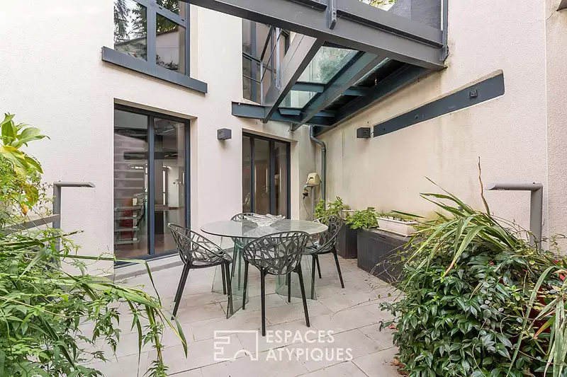 A Caluire et Cuire, ce loft en duplex avec terrasse développe une surface de 114m² (112m² Loi Carrez) et offre un cadre de vie lumineux et contemporain dans un environnement calme et recherché. Organisé sur deux niveaux, ce bien atypique conjugue volumes généreux, matériaux bruts et touches industrielles, dans l'esprit des lofts urbains. Au coeur de ce loft, la pièce de vie impressionne par ses 70m² de surface décloisonnée. Le séjour, baigné de lumière naturelle grâce à de larges ouvertures, intègre une cuisine ouverte contemporaine, avec accès direct à une première terrasse de 21m². Un plancher vitré, donne un aperçu sur une cave accessible par un système à vérin, ajoutant au caractère insolite du lieu. A l'étage, deux chambres confortables prennent place, dont une bénéficie d'un accès direct à une terrasse suspendue de 5m². Une salle de bains complète cet étage. Rénové avec soin, ce bien immobilier conserve les codes du loft industriel : volumes ouverts, jeux de transparence, matériaux bruts. Une adresse confidentielle, pensée comme un lieu de vie singulier, pour les amateurs d'architecture contemporaine et de biens rares. Possibilité d'acheter deux places de parking en sus. CLASSE ENERGIE : C/ CLASSE CLIMAT : C. Montant moyen estimé des dépenses annuelles d'énergie pour un usage standard, établi à partir des prix de l'énergie de l'année 2025 : entre 1010 euros et 1400 euros. Contact - Loic : 07 61 09 19 75 Copropriété de 6 lots (Pas de procédure en cours). Charges annuelles : 960 euros. Loic Odouard (EI) Agent Commercial - Numéro RSAC : 753 650 721 - Lyon.