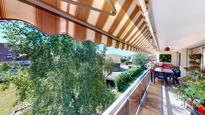 EXPERT IMMO GRAND EST , vous propose en Exclusivité Lingolsheim le futur chez-vous vous attend F3/4 de 114m² Et si vous veniez poser vos valises dans cet appartement, dans un quartier calme où il fait bon vivre dans une petite copropriété très bien tenue. Traversant, lumineux, aux prestations soignées parfait pour une famille... ou simplement pour ceux qui ont besoin d'espace. Ici, pas de place perdue, mais de vrais volumes pour respirer, se retrouver, s'isoler, recevoir. Le salon-séjour avec sa cheminée donnant sur une belle terrasse à la vue dégagée , baigné de lumière grâce aux grandes fenêtres double vitrage. Vous avez aussi une cuisine dinatoire donnant sur un balcon, toute équipée, prête à accueillir vos meilleurs petits plats. Côté nuit, deux belles chambres, une magnifique salle de bain avec douche à l'Italienne, on oublie les embouteillages matinaux ! Sans oublier un wc indépendant. Pour Compléter votre acquisition un garage fermé avec un accès direct dans l'immeuble. Ce que j'aime dans cet appartement, c'est son potentiel. Il est déjà bien pensé, bien agencé, mais il laisse aussi la place à vos envies, vos couleurs, vos idées. Un vrai terrain de jeu pour créer un cocon à votre image. Les +++: chauffage individuel, garage, 3 caves pour les affaires qu'on garde "au cas où", et une buanderie. Prix: 294 950 euros honoraires vendeur inclus En sus 1,68% honoraires acquéreurs. Visite virtuelle disponible uniquement sur demande ! Votre agent local: Bruno Ferreira 06/18/08/60/60 (1.68 % honoraires TTC à la charge de l'acquéreur.) Copropriété de 49 lots - dont 12 lots habitation. (Pas de procédure en cours). Charges annuelles : 1600 euros.
