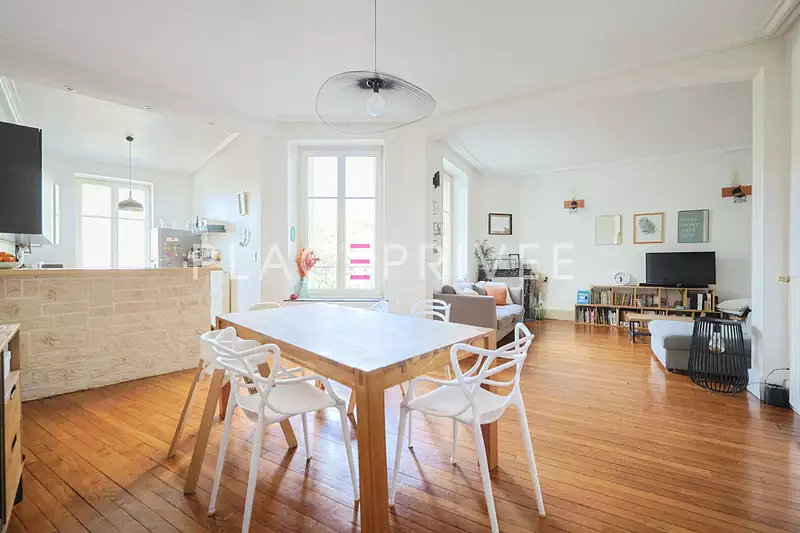 Nancy Faubourg III Maisons : Vend appartement de 114 m² avec 3 chambres dans un immeuble 1930. Situé au premier étage d'une petite copropriété (8 lots) bien tenue du Faubourg des Trois Maisons, cet appartement associe le charme de l'ancien à une rénovation actuelle. L'entrée s'ouvre et se prolonge sur un grand séjour double de plus de 40 m². Parquet massif, hautes fenêtres, cheminées en marbre : les éléments d'origine apportent une belle personnalité à l'ensemble. La cuisine, semi-ouverte, offre un espace fonctionnel et convivial avec son comptoir en pierre et sa crédence aux motifs graphiques. La partie nuit comprend trois chambres de belles dimensions, une salle de bains équipée d'une baignoire et d'une douche, ainsi qu'une buanderie et des toilettes séparées. L'appartement est chauffé au gaz par une chaudière récente (2022) diagnostic énergétique : classe C. Charges prévisionnelles mensuelles de 148 eurosuros. La copropriété (8 lots) dispose d'un local à vélos et d'un espace commun en rez-de-chaussée. Deux places de stationnement peuvent être louées au pied de l'immeuble. Quartier vivant et recherché, à proximité immédiate du centre-ville et du parc de la Pépinière. Un appartement agréable, lumineux et bien entretenu, prêt à accueillir une nouvelle famille. Une exclusivité Place Privée. Les informations sur les risques auxquels ce bien est exposé sont disponibles sur le site Géorisques : www.georisques.gouv.fr Copropriété de 8 lots (Pas de procédure en cours).