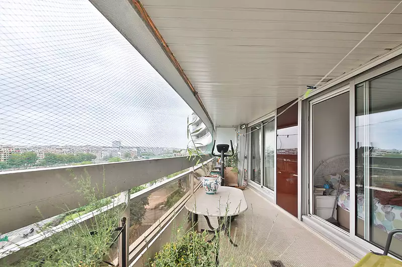 Quai de Seine / Javel ? 5 pièces de 115 m² ensoleillé avec loggias et vue exceptionnelle L'agence FRED?LION Paris 15e Saint-Charles propose un appartement remarquable situé au 8e étage de la tour Orphée. L'agence FRED?LION Paris 15e Saint-Charles vous propose en exclusivité un bel appartement familial traversant, lumineux et parfaitement agencé, situé en étage élevé d'une résidence recherchée. L'appartement se compose d'une entrée avec buanderie, d'un vaste séjour prolongé par un balcon offrant une vue dégagée sur Paris et la Seine, d'une cuisine indépendante attenante, d'une salle à manger (ou 3? chambre possible) et d'un bureau ouvrant sur une grande terrasse. La partie nuit comprend deux chambres dont une avec dressing, une salle de bains avec WC, ainsi qu'une salle d'eau supplémentaire. Cet appartement, idéal pour une famille, offre de belles possibilités d'aménagement et profite d'une excellente luminosité grâce à ses larges ouvertures et à sa double exposition. Une cave complete le bien. Ce confortable appartement familial est en bon état. Parking en option à 25 000 euros Charges : 580 euros/mois, comprenant eau chaude et chauffage collectifs, gardiens, ascenseurs et entretien des parties communes. Copropriété de 287 lots. DPE : E. (3.24 % honoraires TTC à la charge de l'acquéreur.) Copropriété de 287 lots (Pas de procédure en cours). Charges annuelles : 7200 euros.