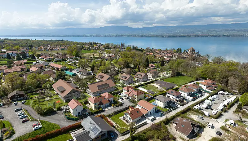 Terre d'Yvoire se compose de 48 logements, répartis dans trois bâtiments collectifs et trois intermédiaires, chaque appartement bénéficiant d'une cave et d'au moins un garage (en fonction des typologies) pour un confort optimal. Nichée à quelques pas de la cité médiévale d'Yvoire et du port, avec une liaison directe vers Nyon, la résidence permet de profiter d'un cadre naturel apaisant tout en offrant un accès rapide aux commodités locales.