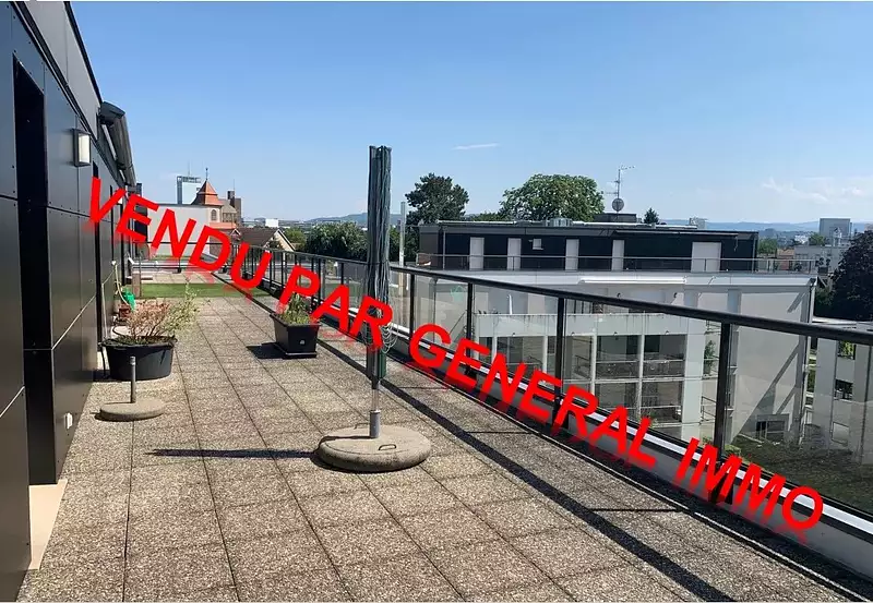 Aux Eaux-vives à Huningue, à proximité de toutes les commodités, très bel attique d'une surface de 115m² avec une terrasse de 80m², comprenant :