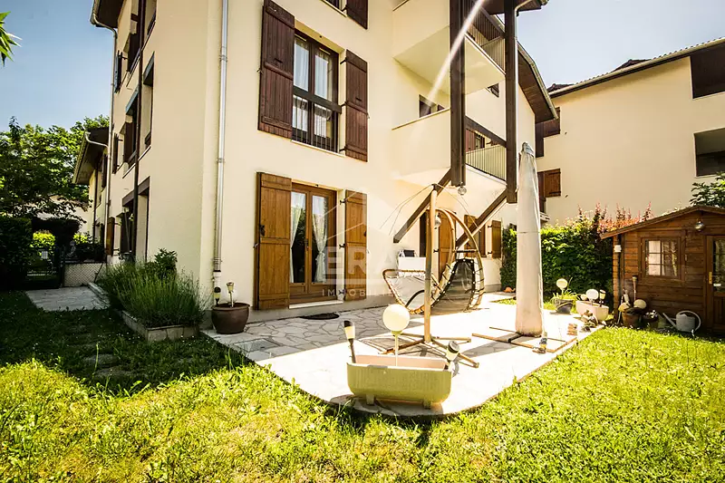 L'agence ERA Bassin du Genevois vous propose à la vente un appartement de 4 pièces avec jardin, terrasse et garage fermé, idéalement situé à Prévessin-Moëns, à proximité de Genève. D'une surface habitable de 115.18 m2, cet appartement offre un cadre de vie agréable dans un quartier calme et résidentiel. Construit en 1984, cet appartement bénéficie d'un bon état général et d'un standing de qualité. Il dispose d'un ascenseur et d'un parking offrant ainsi un confort de vie optimal au quotidien. Doté d'une terrasse de 6 m² et d'un jardin de 100 m², vous pourrez profiter de moments de détente en extérieur en toute tranquillité. De plus, sa double exposition Sud et Ouest vous garantit une luminosité optimale tout au long de la journée. La vue dégagée sur le jardin et les espaces verts environnants vous offre un cadre de vie paisible et verdoyant. Ce bien à Prevessin-Moens vous est proposé par ERA Bassin du Genevois. Pour toute information complémentaire n'hésitez pas à appeler l'agence au 04 50 06 06 54 / 06 50 08 95 47.