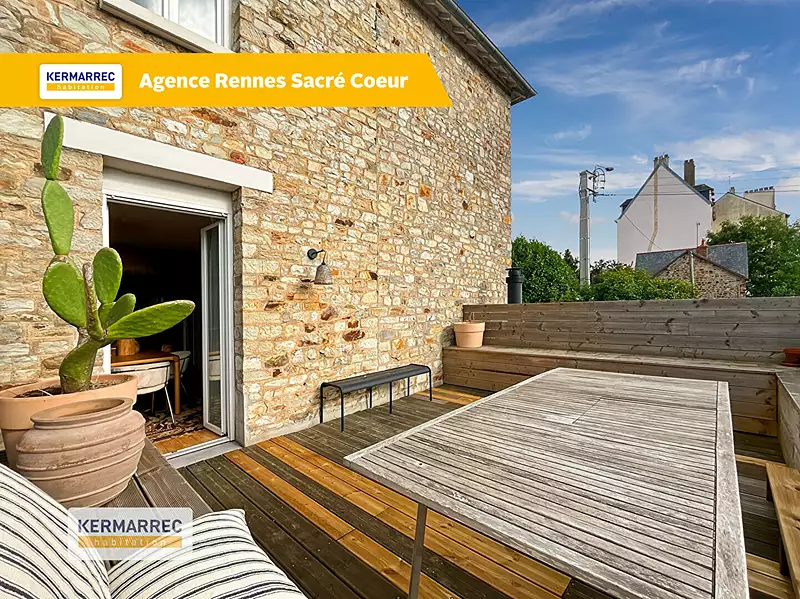 SACRÉ-COEUR / GARE KERMARREC HABITATION vous présente cette belle maison en pierre, entièrement rénovée avec goût. Au rez-de-chaussée : un salon, une cuisine équipée ouverte sur la salle à manger, une chambre sur parquet, ainsi qu'une grande terrasse exposée Ouest. A l'étage : trois chambres, un espace bureau, une salle d'eau avec douche et baignoire et un WC. Possibilité de stationnement. Prix FAI : 556 000 euros dont 4.91 % honoraires TTC à la charge de l'acquéreur.