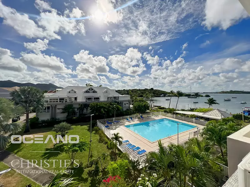 Un cadre de vie unique : Vue sur le lagon et la piscine de la résidence sécurisée, dans un environnement paisible et verdoyant.