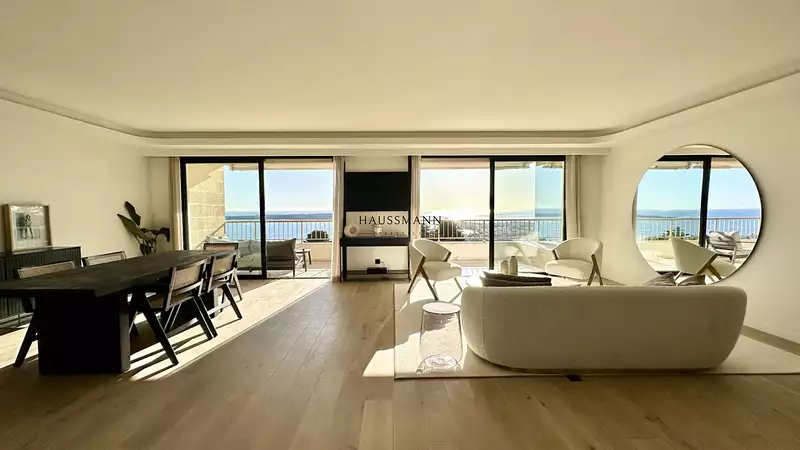 Au sein d'une résidence de haut standing, sécurisée avec gardien, dans le quartier le plus prisé de Cannes : Californie, ce bien d'exception offre un cadre de vie luxueux agrémenté d'un parc verdoyant et d'une piscine. A seulement quelques minutes des plages, commerces, et de la célèbre Croisette, avec vue panoramique sur la mer, les îles de Lérins, et l'Esterel, au cinquieme etage d'une residence de grand standing, Cet appartement de 116 m² en excellent état se distingue par sa luminosité et son agencement optimisé. Il se compose comme suit: Le grand séjour, baigné de lumière grâce à ses doubles baies vitrées, s'ouvre sur une terrasse de 20 m² avec vue mer idéale pour profiter de la douceur du climat méditerranéen, la cuisine ouverte, entièrement équipée, s'intègre harmonieusement dans cet espace de vie. Il comprend également une suite, une chambre de maître avec salle de bains et de douche ainsi qu'une buanderie. Ce bien comprend également une cave et un garage, ajoutant une touche de praticité à ce cadre de vie d'exception. Copropriete de lots Charges : 850 Euros / Mois Honoraires à la charge du vendeur. Les informations sur les risques auxquels ce bien est exposé sont disponibles sur le site Géorisques : www.georisques.gouv.fr.