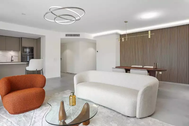 Ce 4 pièces d’exception séduit par ses volumes généreux et ses finitions haut de gamme. Le vaste séjour, baigné de lumière grâce à son exposition plein sud, s’ouvre sur une terrasse panoramique offrant une vue imprenable sur la baie de Cannes et les îles de Lérins.