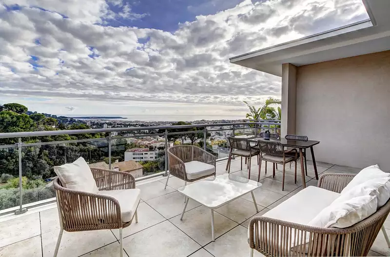 Dans une résidence de haut standing sur les hauts du Cannet nous vous proposons un magnifique appartement de 116m2 avec une belle vue mer et montagnes que vous pourrez admirer de votre terrasse et de vos deux balcons. Cet appartement se situe au dernier étage d'une batiment de seulement 2 étages. Il se compose d'un beau séjour de plus 40m² avec cuisine ouverte, 3 chambres en suite avec chacune sa salle d'eau.